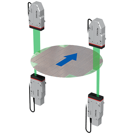 So ermöglicht beispielsweise das Durchleiten eines Wafers zwischen Sender und Empfänger der Modellreihe LS-9000 während des Transfers zur Verarbeitungsanlage die Messung des Außendurchmessers in der Größenordnung von Mikron.