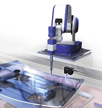 Bei der Montage von Glasscheiben an Karosserien wird ein Dispenserroboter zur automatischen Beschichtung von Dichtstoffen (Versiegelung, Grundierung) eingesetzt. Wenn die Versiegelung unsachgemäß beschichtet wird, können Wasser und andere Fremdkörper in das Innere eindringen und die Korrosionsbeständigkeit des Körpers beeinträchtigen.