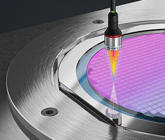 Um die Verarbeitungspräzision und -qualität in der Massenfertigung von Halbleitern zu erhalten, ist es notwendig, die Präzision von automatischen Verarbeitungsanlagen aufrechtzuerhalten. Jede kleine Neigung oder Höhenabweichung von der Platzierung oder Positionierung des Wafers hat einen großen Einfluss auf die Bearbeitungsqualität. Der kompakte konfokale Wegmesssensor kann in einer Waferbearbeitungsanlage platziert werden, um auf Höhen- und Neigungsabweichungen der Wafer zu überwachen und die Bearbeitungsqualität zu verbessern.