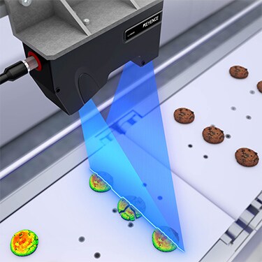 Lebensmittel- und Medikamentenkartons werden daraufhin geprüft, ob sie eingedrückt sind. Höhenbilder, die Höhenunterschiede auf der Grundlage von Höhenmessdaten farblich darstellen, erleichtern die Erkennung von unebenen Oberflächen und anderen Bedingungen unabhängig von Beschriftungen, Mustern oder anderen Oberflächenmerkmalen.