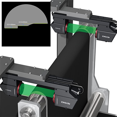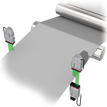 Mit zwei Lichtbandmikrometern, die auf den gegenüberliegenden Seiten einer Folie angebracht werden, können Sie eine Breitenmessung durchführen und die Position der Folie unabhängig von Farbe und Material ermitteln.