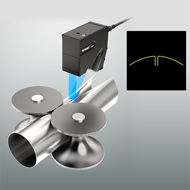 Erkennen Sie Schweißdefekte wie Löcher, Verschmelzung oder Spritzer mit der 2D- oder 3D-Qualitätskontrolle mit Laser-Profilmesssystemen. Der LJ-X8000 kann unabhängig von der Farbe der Schweißnaht und daher für die Überprüfung jeder Schweißnaht zuverlässig eingesetzt werden.