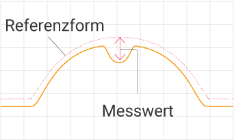 Führt einen Vergleich mit der definierten Referenzform durch und misst anschließend den Bereich mit dem größten Höhenunterschied.