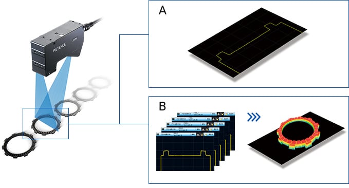 - Beispiele für die 2D/3D-Formprüfung mit der Modellreihe LJ-V7000