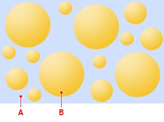 Emulsionen, die ein Gemisch aus zwei Flüssigkeiten sind, die sich nicht ineinander auflösen, wie z. B. Wasser und Öl, werden danach eingeteilt, welches Material das dispergierte Material und welches das Dispersionsmedium ist.