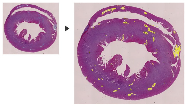In den letzten Jahren hat man große Fortschritte bei der Entdeckung von Faktoren, die eine Fibrose des Herzmuskels verhindern, und bei der Forschung im Gebiet der regenerativen Medizin erzielt. Das kompakte Fluoreszenzmikroskop BZ-X wurde in mehreren Studien zur Quantifizierung des Fibrosegrads bei Laborratten verwendet.