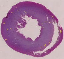 - Mit der Software für die hybride Zellzählung werden aus dem gesamten Bereich nur fibrotische Flächen extrahiert und der Anteil automatisch berechnet.