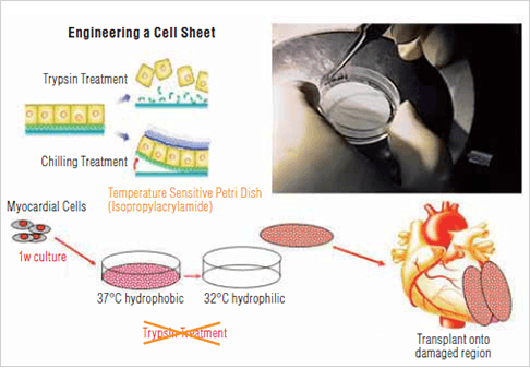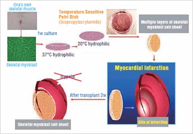 Im Mai 2007 war das Team von Dr. Sawa weltweit das erste, das diese Behandlungsmethode bei Patienten mit dilatativer Kardiomyopathie erfolgreich einführte. Zunächst wurden Muskelzellen aus dem eigenen Bein des Patienten entnommen und kultiviert. Dann wurden diese Zellen in ein Blatt mit einem Durchmesser von etwa 4 cm und einer Dicke von etwa 0,1 mm gelegt. Diese Schicht wurde dann auf das Herz transplantiert, und die erfolgreiche Regeneration der Herzmuskelfunktion wurde erreicht. Vor dieser Behandlung hatte der Patient ein künstliches Hilfsherz eingesetzt bekommen und benötigte ein Herztransplantat, um zu überleben. Drei Monate nach dieser Behandlung hatte sich jedoch die Kontraktionsrate des Herzens und das durch den Körper transportierte Blutvolumen soweit verbessert, dass das künstliches Hilfsherz entfernt werden konnte und der Patient im Dezember desselben Jahres aus dem Krankenhaus entlassen werden konnte.