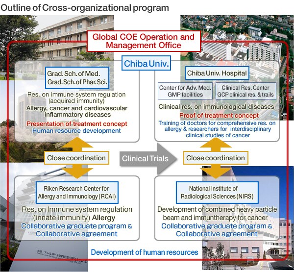 Forschungsinstitute auf der ganzen Welt erforschen neue Zusammenhänge über das Immunsystem und setzen die daraus gewonnenen Erkenntnisse bei der Behandlung von Krankheiten ein. Die Chiba-Universität ist eines solcher Institute, das Spitzenforschung betreibt. Hier arbeiten die Medizinische Fakultät und die Fakultät für Pharmazeutische Wissenschaften an der Grundlagenforschung zu den Mechanismen des Immunsystems mit dem Ziel, anhand dieser Grundlagenforschung ein Therapiekonzept für refraktäre immunologische Erkrankungen zu erstellen. Darüber hinaus fördert das auf dem Gelände des Universitätsklinikums eröffnete Zentrum für fortgeschrittene Medizin klinische Studien, um die aus den Erkenntnissen der Grundlagenforschung entwickelten Therapiekonzepte zu untermauern.