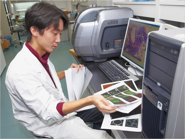 Das Labor von Dr. Nakayama, das sich als Forschungszentrum für das Global COE-Program eignet, ist mit modernsten Zellseparationssystemen und anderen Geräten ausgestattet, die für die Erforschung der pathologischen Modelle immunologischer Erkrankungen erforderlich sind. Darunter befindet sich auch das Fluoreszenzmikroskop der Modellreihe BZ von KEYENCE, das für die Zellbeobachtung in vollem Umfang genutzt wird.