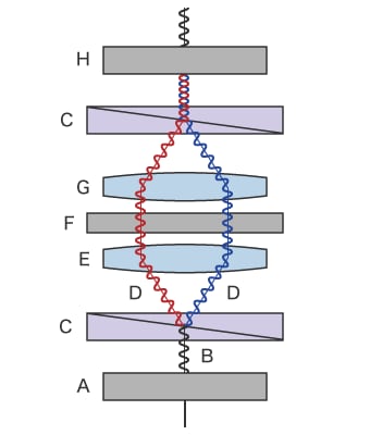 Schematische Darstellung der Differential-Interferenz-Kontrast-Betrachtung