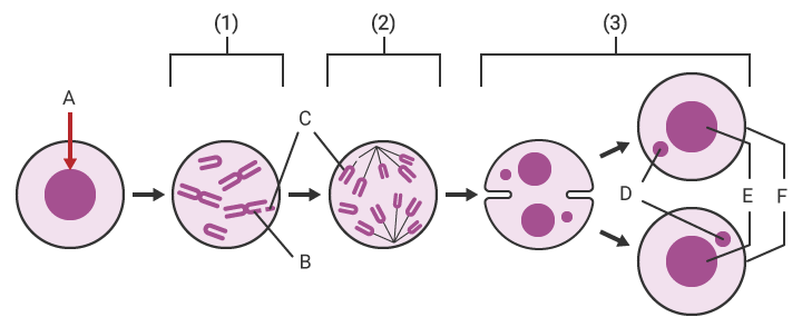 - (2) Anaphase: Die Zellteilung schreitet fort, wobei das Chromosomenfragment in der Zelle verbleibt.