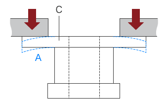 - Die Spannkraft verformt ein Werkstück, wenn die Befestigungskraft, mit der das Werkstück fixiert wird, die Festigkeit des zu fixierenden Teils übersteigt.