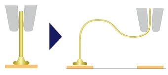 Die Kapillare bewegt sich zum zweiten Bonding-Punkt, wodurch eine Schleifenform des Bondingdrahts erzeugt wird.