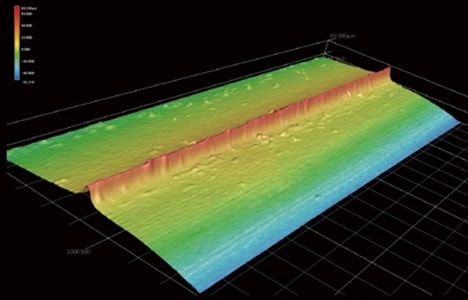 Die Modellreihe VR erfasst mit einer Aufnahme mehrere hunderttausend Messpunkte. Verschiedene Profillinien wie z. B. lotrechte, parallele und senkrechte Linien können ebenfalls durch einfache und intuitive Vorgänge an den gewünschten Stellen gesetzt werden. Da auch eine präzise Profilmessung möglich ist, können Anwender sofort detaillierte Daten erfassen, die für die Identifizierung der Ursachen von Graten unerlässlich sind.