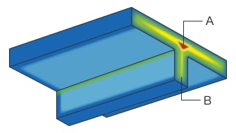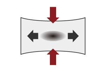 Die Zugeigenspannung ist eine Spannung, die das Innere des geformten Produkts nach außen zieht. Sie entsteht, wenn geschmolzener Kunststoff, der unter hohem Druck in die Form gespritzt wurde, von außen nach innen abkühlt und erstarrt. Druckeigenspannung ist eine Spannung, die entsteht, wenn der Druck, der auf die Form ausgeübt wird, um das Produkt zu formen, den Kunststoff nach innen drückt.