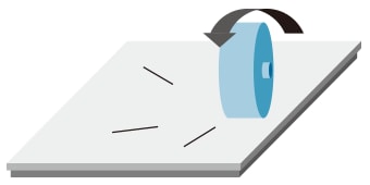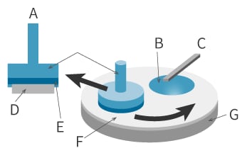 Ein Schleifmittel wird auf eine Scheibe gegeben, die gegen die zu polierende Oberfläche drückt. Die Oberfläche wird poliert, indem sich die Scheibe dreht.