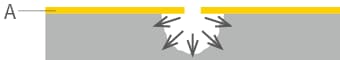 An der Maskenöffnung wird das Objekt mit gleicher Geschwindigkeit radial geätzt, sodass der Bereich unmittelbar unter der Maske gebohrt wird (Seitenätzung, Hinterschneidung).