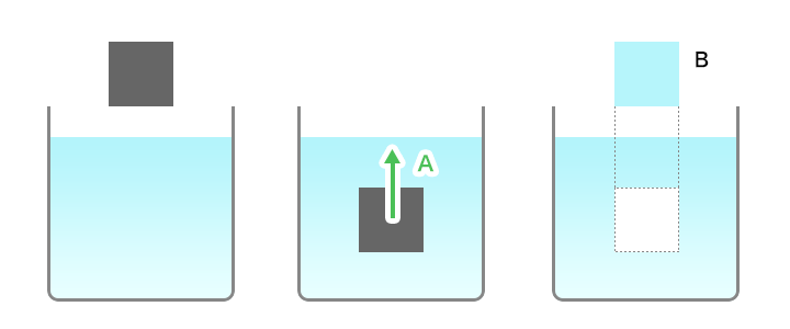 - B = Gewicht der verdrängten Flüssigkeit