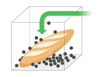 Die Samenverdrängungsmethode wird häufig zur Messung des Volumens von Brot, Süßwaren und anderen Lebensmitteln verwendet. Bei der Messung des Volumens von Lebensmitteln wie Brot und Süßwaren können die Produkte nicht in Flüssigkeit getaucht werden. In solchen Fällen wird die Messung des Volumens mit kleinen Samen anstelle von Flüssigkeit durchgeführt. Neben der Samenverdrängungsmethode wird auch die Perlenverdrängungsmethode zur Volumenmessung unter Verwendung von Perlen als eine Art Pseudo-Flüssigkeit verwendet. Die Sandverdrängungsmethode, bei der Sand anstelle von Flüssigkeit verwendet wird, wird manchmal auch zur Messung des Volumens innerhalb großer Strukturen wie Dämmen und Tunneln eingesetzt.