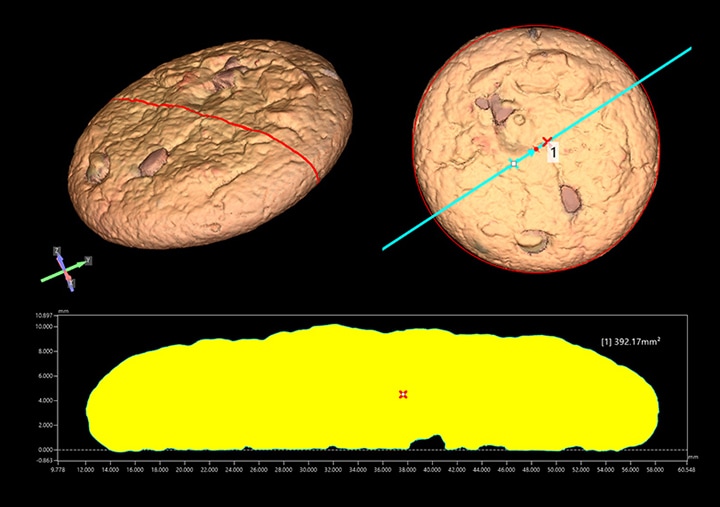 Da keine anfängliche Konfiguration der Einstellungen und Vorjustierung des Messobjekts erforderlich ist, kann die Volumenmessung einfach durch Auflegen des Objekts auf den Objekttisch und das Betätigen einer Taste gestartet werden. Alle erfassten Daten sind digital: Dies vereinfacht nicht nur die Datenverwaltung, sondern ermöglicht auch eine effiziente Analyse mit der Möglichkeit, Messungen von Form- und Lagetoleranzen direkt an den erfassten Daten vorzunehmen.