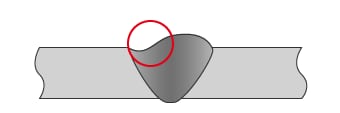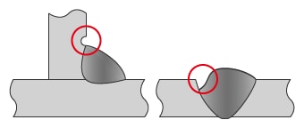 - Eine Hinterschneidung wird in der Regel durch zu hohe Schweißströme oder -geschwindigkeiten verursacht.