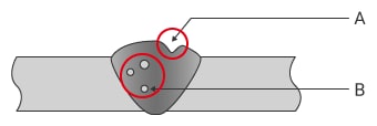 - Unvollständiges Verschmelzen – wenn das geschmolzene Metall an einer bestimmten Stelle nicht mit dem Grundwerkstoff verschmilzt.