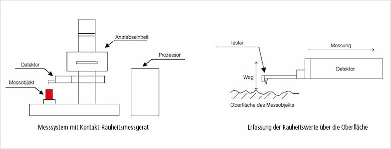Bei taktilen Messgeräten kommt es zu einer direkten Berührung der Oberfläche der Probe durch die Tastspitze. Am Erkennungsarm ist eine Tastspitze angebracht, die der Oberfläche der Probe folgt. Die vertikale Bewegung der Tastspitze wird elektrisch erkannt. Die elektrischen Signale werden verstärkt, digital umgewandelt und aufgezeichnet.