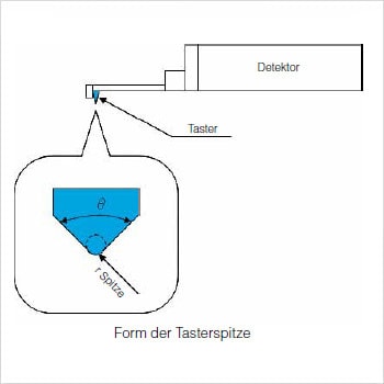 Um mit einem Kontakt-Rauheitsmessgerät präzise Messungen von Form und Rauheit durchführen zu können, muss der Radius der Tasterspitze möglichst klein und der Kontaktdruck möglichst gering sein.