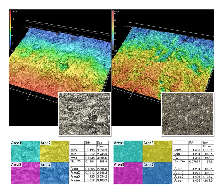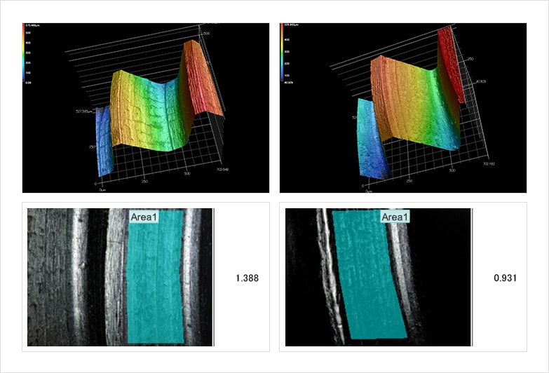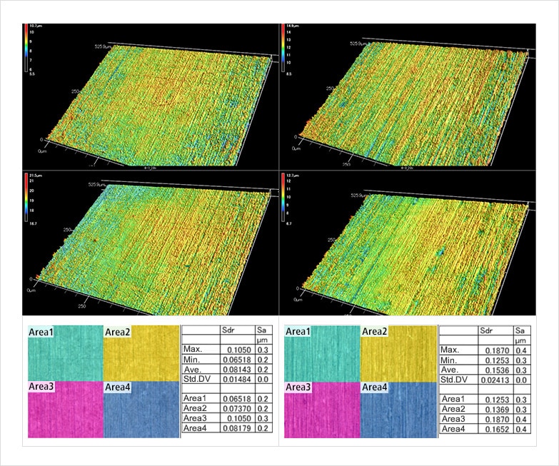 In dieser Analyse werden Veränderungen in den Oberflächeneigenschaften, die sich aus verschiedenen Bearbeitungsmethoden ergeben, verglichen. Sa- und Sz-Analysen werden verwendet, um die Oberflächenbeschaffenheit zu untersuchen, und Str wird eingesetzt, um zu überprüfen, ob sich auf der Außenseite Bearbeitungsspuren befinden.