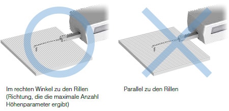 Positionieren Sie, wenn die Messrichtung nichtangegeben ist, das Messobjekt so, dass die Messrichtung die maximale Anzahl Parameter in Höhenrichtung (Ra, Rz) ergibt.