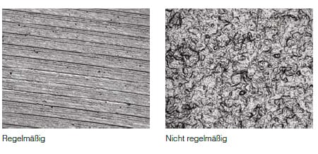 Beurteilen Sie, ob die Oberflächenstruktur des Messobjekts (Rillen, Rauheitsprofil) regelmäßig ist oder nicht.