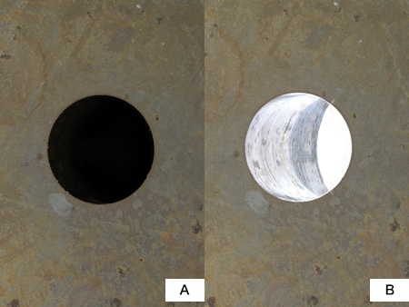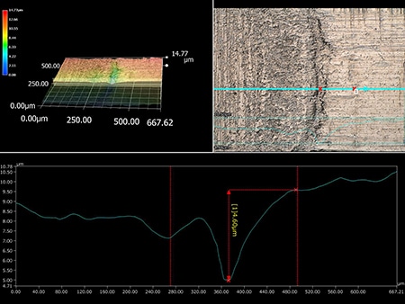 Der optische Schatteneffekt-Modus kann verwendet werden, um mikroskopische Unregelmäßigkeiten sichtbar zu machen.