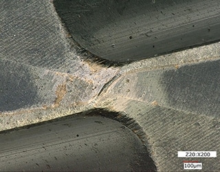 Das Digitalmikroskop der Modellreihe VHX bietet Vergrößerungen von 0,1x bis 6000x. Mit der Modellreihe VHX können kleinste Risse und Fehler betrachtet werden. Zusätzlich zu diesen hohen Vergrößerungen ermöglicht die Modellreihe VHX eine hochauflösende 4K-Bilderfassung. Diese Bildgebungsfunktion erleichtert beispielsweise die Unterscheidung zwischen Verschleiß und anhaftenden Fremdkörpern.