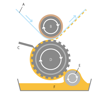 - D: Formzylinder (Druckplatte)