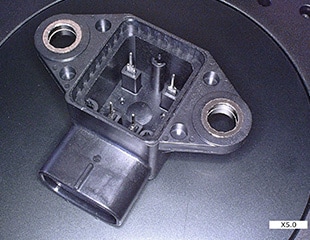 Mit den hochauflösenden Aufnahmen, die durch die hochauflösenden Objektive und den 4K-CMOS-Sensor der Modellreihe VHX erzeugt werden, können Einfallstellen, Fließlinien und andere kleine Mängel in Spritzgussteilen auch bei geringer Vergrößerung deutlich erfasst werden, wobei das Objekt auch bei geneigtem Objektiv vollständig im Sichtfeld bleibt.