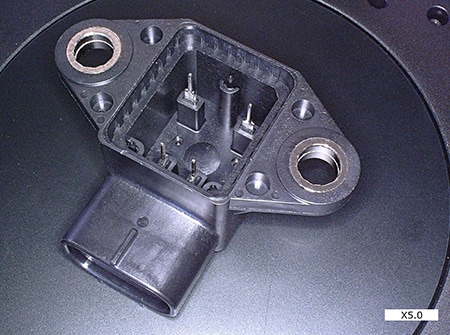 Mit Ausnahme des mehrfarbigen Spritzgusses sind Spritzgussteile in der Regel einfarbig und haben daher einen geringen Kontrast, was die Betrachtung von Oberflächenfehlern erschwert. Besonders schwierig ist es, geeignete Beleuchtungsbedingungen für die Betrachtung von Bindenähten zu finden. Dabei handelt es sich um Rillen oder Muster, die durch eine schlechte Verschmelzung in der Bindenaht verursacht werden, wo Fließfronten des Schmelzflusses in der Spritzgussform aufeinandertreffen.