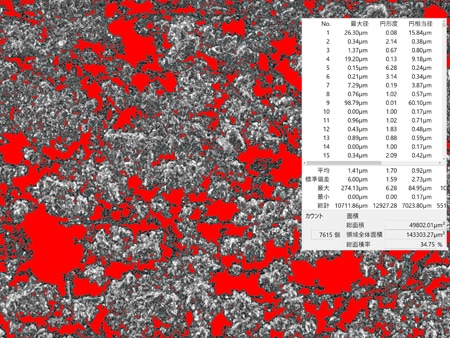Die automatische Flächenmessung ermöglicht es, Gummipartikel zu quantifizieren.