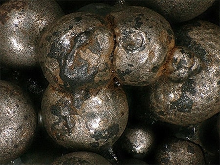 - Kleine Stahl- oder Gusseisenkugeln (Schrot), Sand, Edelstahl, Aluminiumoxid, Kupfer, Glas, Kunststoff, Plastik und Walnusspulver