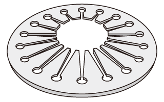 - Konische Scheibenfedern werden hergestellt, indem die Mitte einer konischen Tellerfeder ausgehöhlt wird. Dieser Federtyp wird häufig als Unterlegscheibe verwendet, um zu verhindern, dass sich Schrauben lösen.