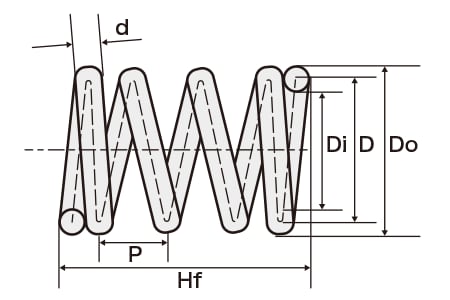 Symbol: Hf (mm)Aktive Windungen Die Anzahl der Windungen, die von der Feder zur Krafterzeugung verwendet werden.