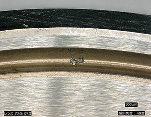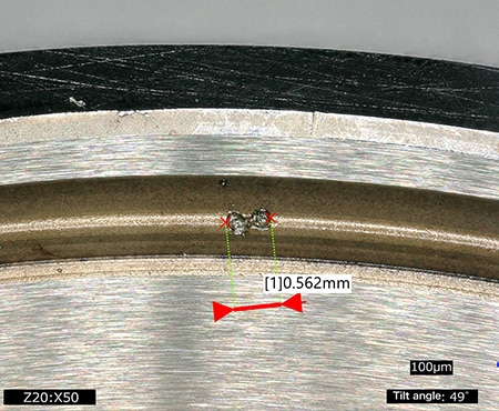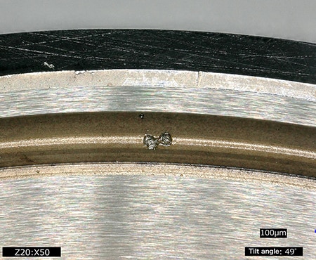 Das Digitalmikroskop der Modellreihe VHX verfügt über Funktionen zur Glanzlichtentfernung und zur Optimierung von ringförmigen Reflexionen. Dies ermöglicht eine klare Bildaufnahme und verhindert Reflexionen auf einer Oberfläche, die aufgrund von Reibung einen erhöhten Glanzeffekt aufweist. Das Digitalmikroskop unterscheidet zwischen feinen Haarkratzern, durch Reibung verursachten Dellen und Anhaftungen, um eine genauere Einschätzung der Verschleiß- und Reibungsbedingungen zu ermöglichen.
