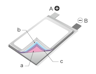 Der laminierte Typ wird auch als Lithium-Polymer-Batterie bezeichnet. Da durch die Verwendung einer mit Folien laminierten Zelle die Dicke der Batterie reduziert werden kann, wird dieser Typ für Geräte verwendet, die dünner sein müssen, wie Smartphones und Tablets.