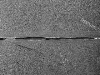- Die Fokuseinstellung und die Bestimmung der Lichtverhältnisse sind bei dreidimensionalen Messobjekten oder Messobjekten mit subtilen Kratzern und geringem Kontrast schwierig. Bei diesen Messobjekten variiert die Fokusposition von Bediener zu Bediener, was zu Fehlern in den Auswertungsergebnissen führt.