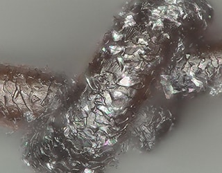 Die Beurteilung der Haarqualität und der Ergebnisse von Haarpflegeprodukten erfolgt u. a. durch die Beurteilung der Ablösung der Schuppenschicht.