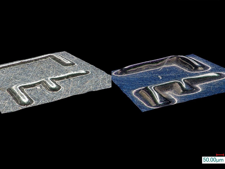 Das Digitalmikroskop der Modellreihe VHX kann mikroskopische Formen und Oberflächenbeschaffenheiten in der Höhenrichtung erfassen und dabei die Fokusposition ändern, was eine Betrachtung mit 3D-Bildern ermöglicht. Durch die Verwendung von hochauflösenden 4K-Bildern, die sogar die Oberflächenrauheit erfassen, ermöglicht es berührungslose, präzise 3D-Messungen.