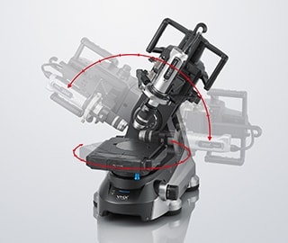 Mit der XYZ-Achsensteuerung zur einfachen Einstellung des Sichtfelds, der Drehachse und der schrägen Achse sorgt das euzentrische Design dafür, dass das Messobjekt im Sichtfeld zentriert bleibt, auch wenn die Objektiveinheit gekippt oder gedreht wird. Dank des großen Betrachtungsabstands können wichtige Beweismittel in jedem Winkel berührungslos betrachtet werden. Die Funktion für die Tiefenzusammensetzung ist auch bei geneigter Betrachtung verfügbar.