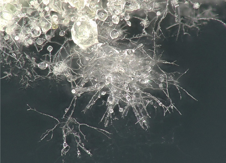 Im Folgenden werden Beispiele für die Betrachtung von Schimmelpilzen, ihren Sporen und Hyphen unter verschiedenen Beleuchtungsbedingungen und unter Verwendung hochfunktionaler Objektive und des 4K-CMOS-Bilderfassungssensors der Modellreihe VHX vorgestellt.