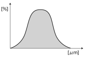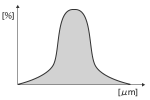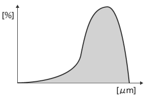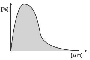 Partikelgrößenverteilungen werden in der Regel grafisch mit dem Partikeldurchmesser [μm] auf der horizontalen Achse und der Häufigkeit [%] auf der vertikalen Achse dargestellt.