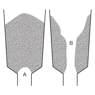 Pulver mit geringer Fließfähigkeit, wie z. B. Weizenmehl, verteilen sich nicht auf der horizontalen Ebene und behalten ihre Form bei, wenn sie zu einer konischen Form gehäuft werden. Pulver mit geringer Fließfähigkeit lassen sich nur schwer aus Trichtern und Silos austragen und können Brücken oder Rinnen bilden.